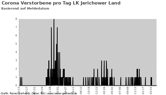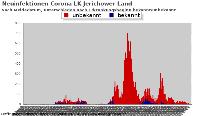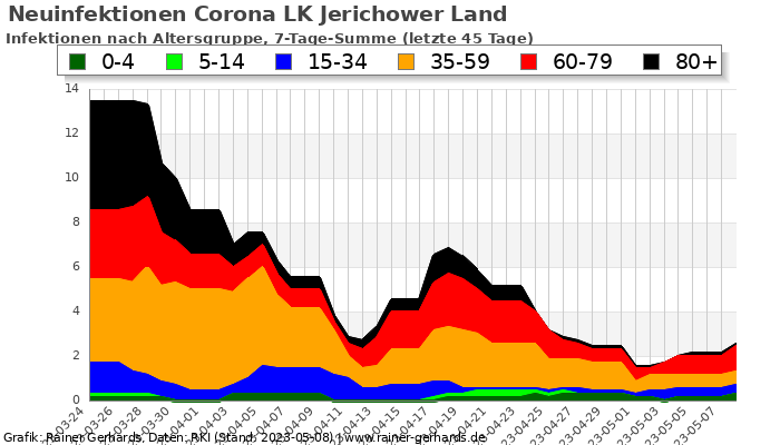 Hier finden Sie Informationen zum Verlauf der Corona-Infektionen im LK Jerichower Land. Zur Übersicht „Corona in allen deutschen Kreisen„.