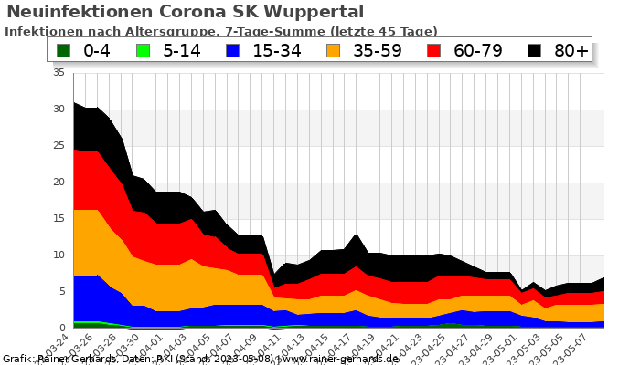 Hier finden Sie Informationen zum Verlauf der Corona-Infektionen im SK Wuppertal. Zur Übersicht „Corona in allen deutschen Kreisen„.